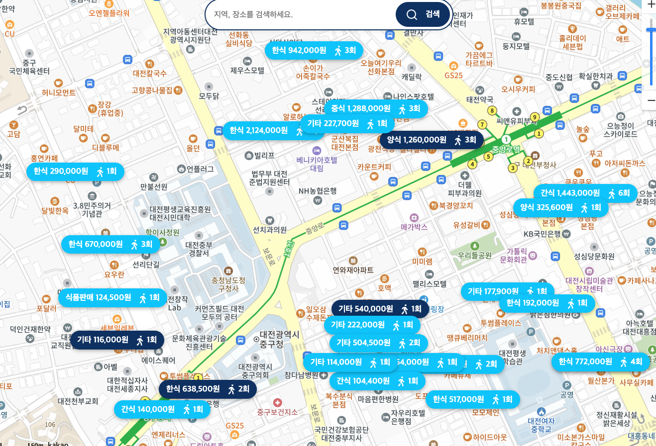 - 대전시 및 5개 구청장 등 단체장 업무추진비 사용 내역 지도 시각화