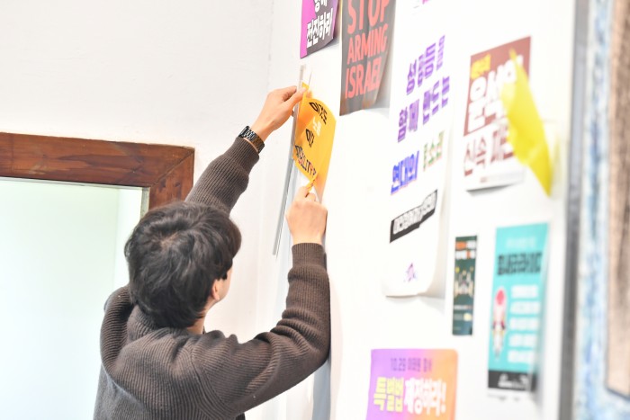 연대 상징: 현재 사무실에 비치되어 있던 여러 연대를 상징하는 피켓 및 현수막 (예: 차별금지법 제정하라, 성평등을 향해 가자 등)을 전시해, 우리 연대가 권력 감시를 넘어 다양성과 평등의 가치를 확장해 온 노력을 보여주었습니다.