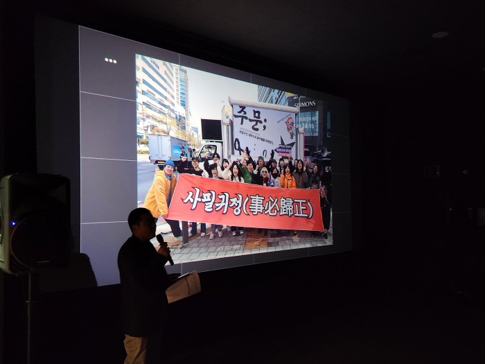 김재섭 사무처장은 올 한 해 숨가쁘게 달려온 2025년 활동을 소개했습니다. 특히 12.3 불법 비상계엄 대응부터 지방자치 30년 공론장, 광장 시민들과의 연대, 30주년 책자 제작까지, 회원님들의 힘으로 지방자치를 확대하고 민주주의를 지켜온 역사를 공유했습니다 . 또한, 주요 활동 중 하나인 '업무추진비 맛집지도' 시연을 통해 투명한 권력 감시 활동의 성과를 보여주었습니다.