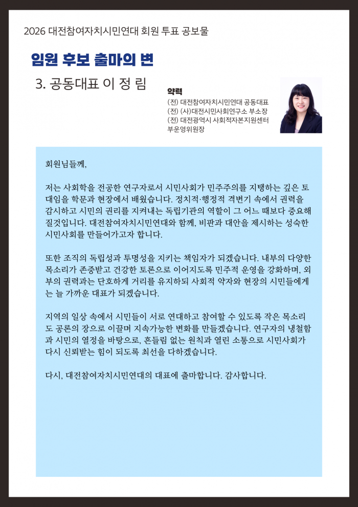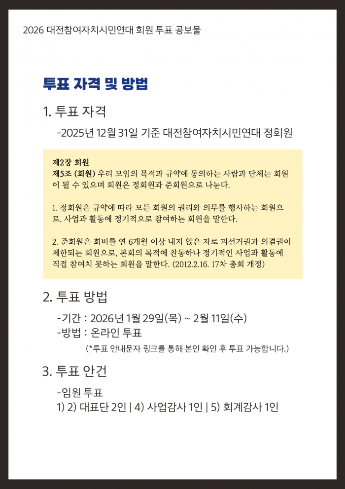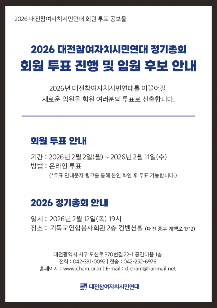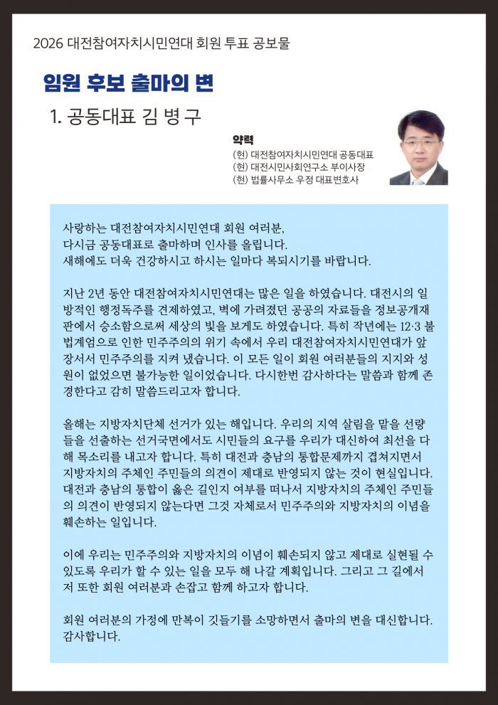 2026 대전참여자치시민연대 회원 투표 진행 및 임원 후보 안내