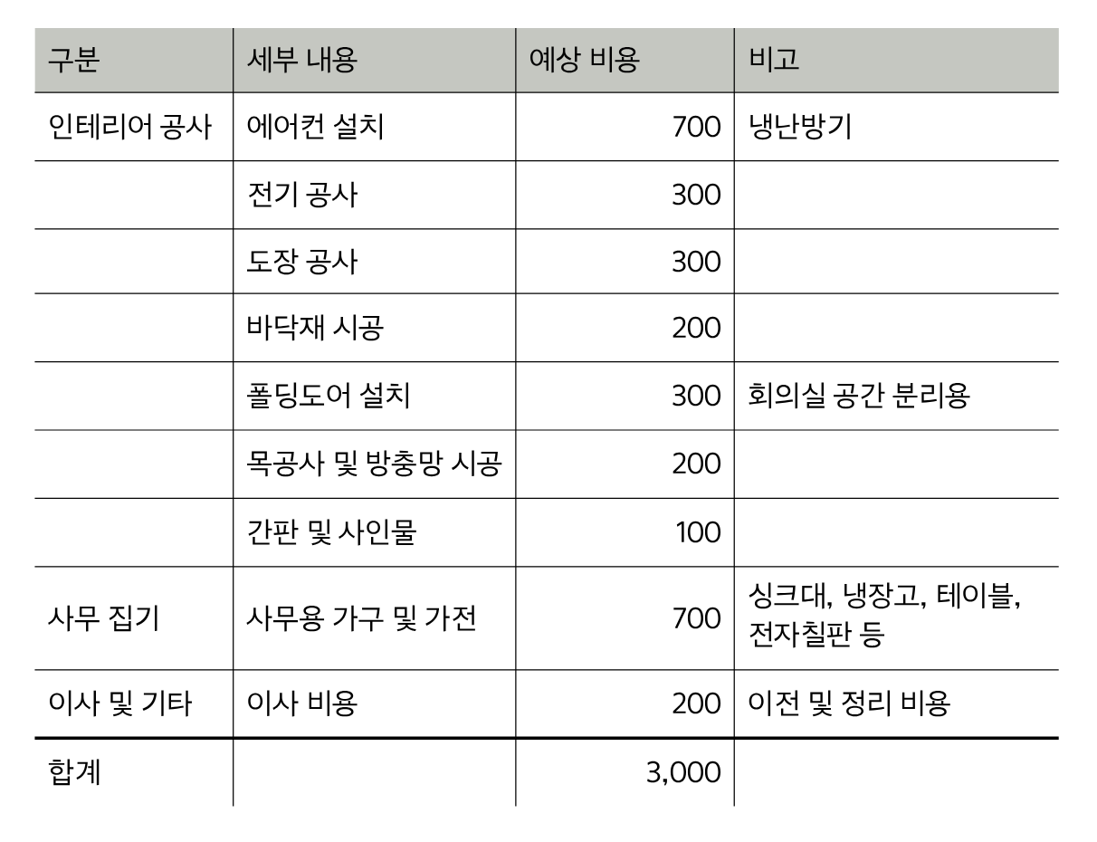 <공간 조성 및 이사 비용 추산>
