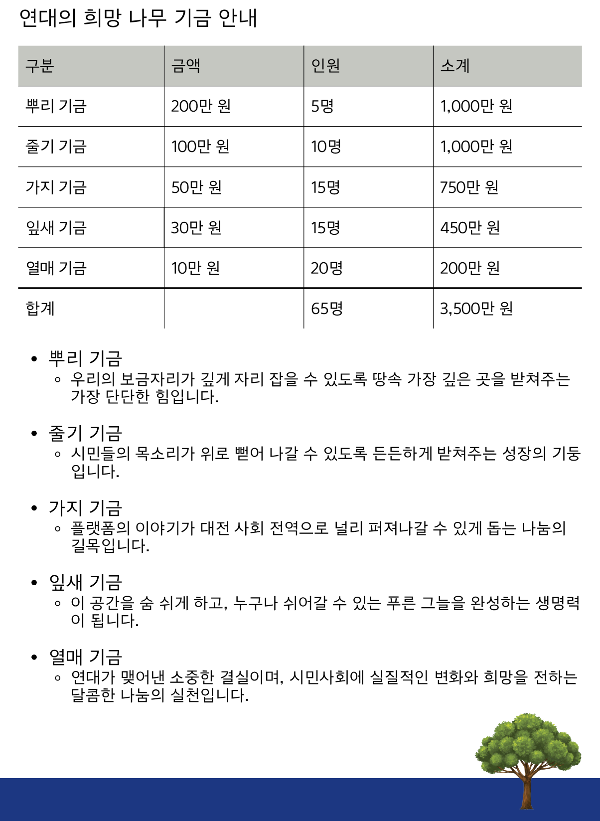 31년간 이 조직의 뿌리가 되어주신 여러분께 다시 한번 손을 내밉니다.